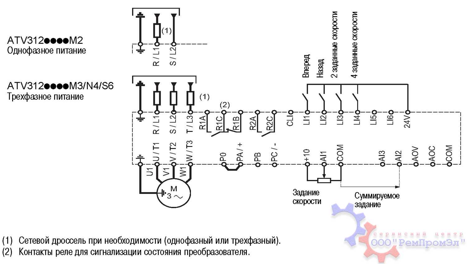 Типовые схемы подключения ПЧ SCHNEIDER ELECTRIC