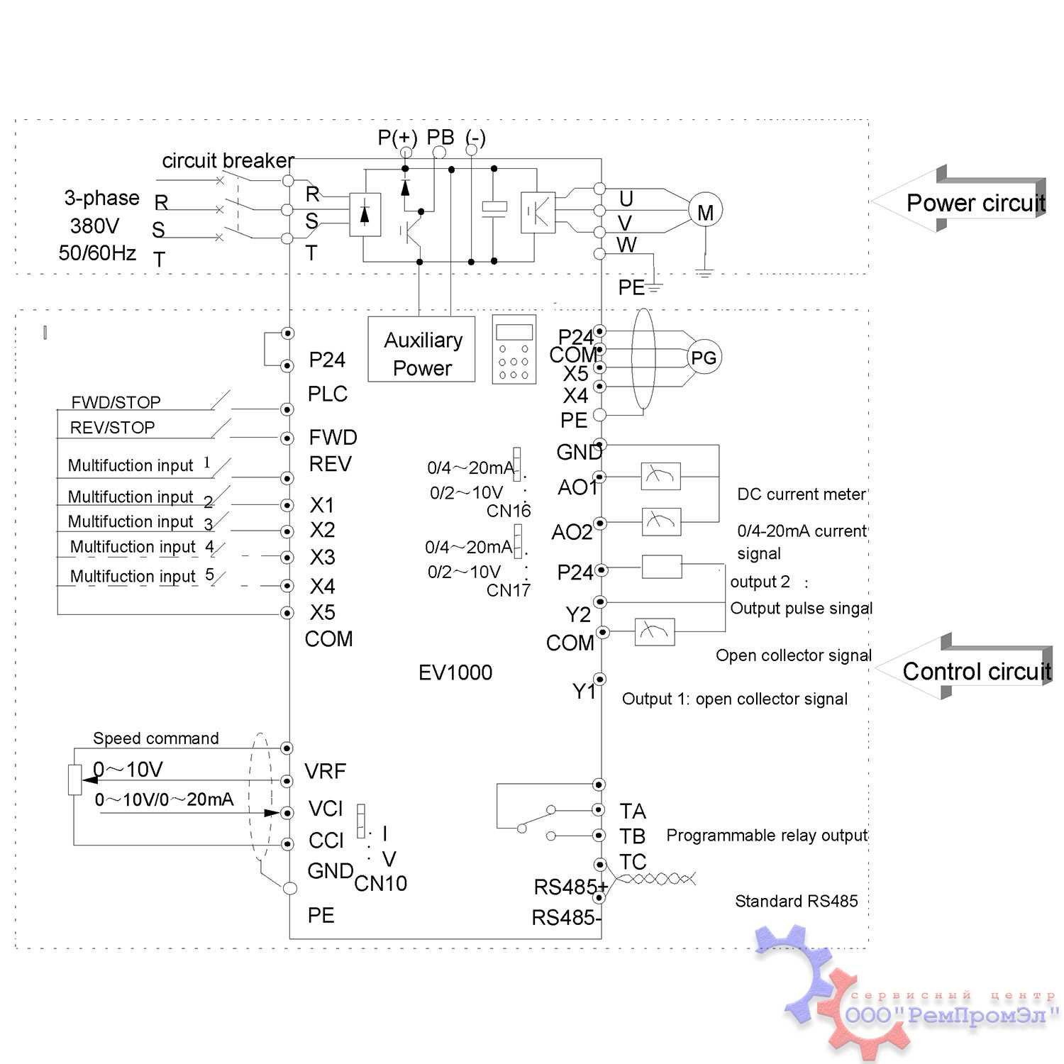 Типовые схемы подключения ПЧ EMERSON